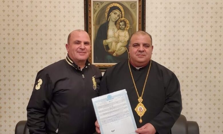 وقامت كاتبة العدل في زحلة الأستاذة سيسيل جورج أبو شعيا والسيد طوني مسلّم، الذي أهتم بكامل رسوم التسجيل، بزيارة راعي الأبرشية المطران ابراهيم مخايل ابراهيم وسلّماه صك ملكية العقار في منطقة حزرتا العقارية البالغة مساحته 2027 متراً مربعاً.