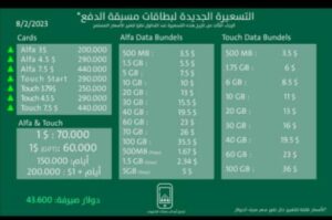بالصورة : اليكم اسعار بطاقات الفا و تاتش الجديد بعد رفع صيرفة