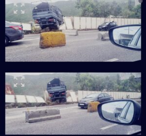 *فرق الإسعاف توجّهت إلى المكان ومعلومات عن سقوط جرحى… آليّة عسكريّة تصطدم بفاصل إسمنتيّ.*