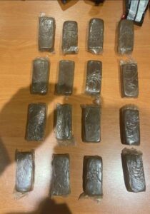 ولفت إلى أنّه، “ضُبط بحوزته /16/ قطعة من مادّة حشيشة الكيف على شكل مكعّب مستطيل بحجم إصبع اليد، كلٌّ منها مغلّفة بنايلون أبيض شفّاف زنِتها الإجمالية /1،266/ كلغ موضّبة في داخل حقيبتي الشحن والكتف الخاصّة به داخل غلافات “شوكولا”، وذلك لدى سفره إلى تركيا”.