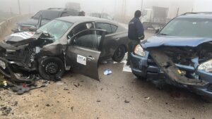 وقع حادث مروري مروع على طريق ضهر البيدر بين ثلاث سيارات بسبب سوء الرؤية والأجواء الممطرة .