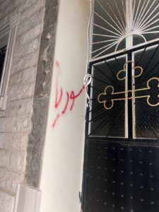 بالصور عبارات على حائط كنيسة تثير بلبلة وغضب بين الاهالي.