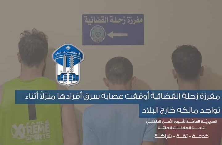مفرزة زحلة القضائية أوقفت عصابة سرق أفرادها منزلاً أثناء تواجد مالكه خارج البلاد