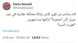 “قوى الأمن تُزيل تعديات عقارية في جبيل… وفارس سعيد يُعلّق: تغيّرت الدنيا!”