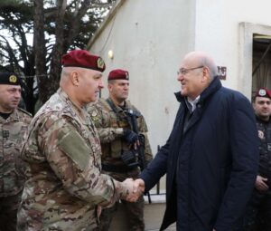 وفي وقتٍ سابق، كان قد وصل قائد الجيش العماد جوزاف عون إلى قيادة لواء المشاة السابع في ثكنة فرنسوا الحاج – مرجعيون، حيث يلتقي الضباط والعسكريين ويطّلع على مهماتهم وأوضاعهم العملانية.
