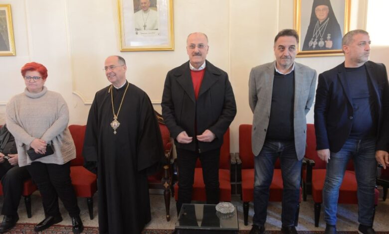 ثم انتقل الوفد إلى مطرانية صيدا ودير القمر لطائفة الروم الكاثوليك، والتقى المطران إيلي بشارة الحداد، مقدماً له التهنئة، وكانت أمنيات بأن “تحمل الأيام القادمة الأمل والأمان والسلام”.