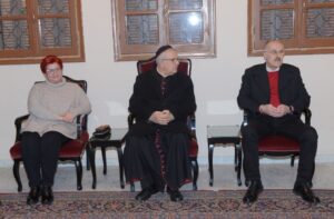 ثم انتقل الوفد إلى مطرانية صيدا ودير القمر لطائفة الروم الكاثوليك، والتقى المطران إيلي بشارة الحداد، مقدماً له التهنئة، وكانت أمنيات بأن “تحمل الأيام القادمة الأمل والأمان والسلام”.