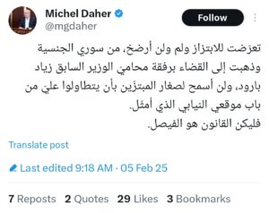 نشر النائب ميشال الضاهر عبر حسابه على منصة “إكس”،
