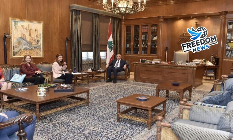 استقبل رئيس مجلس النواب نبيه بري في مقر الرئاسة الثانية في عين التينة نائبة المبعوث الأميركي الخاص الى الشرق الأوسط مورغان أورتاغوس والوفد المرافق بحضور السفيرة الأميركية لدى لبنان ليزا جونسون والمستشار الإعلامي لرئيس المجلس علي حمدان.