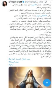 كتبة رئيسة الكتلة الشعبية السيدة ميريام سكاف عبر حسابها على منصة ×