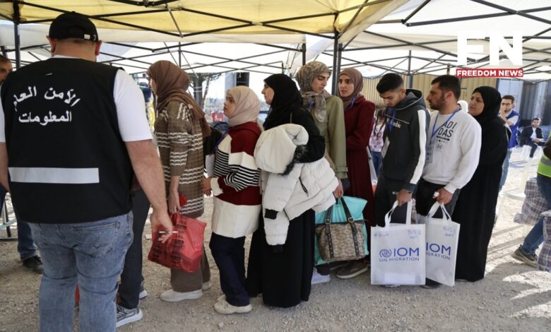 أعلن مكتب شؤون الإعلام في المديرية العامة للأمن العام، أن “المديرية نظّمت صباح اليوم الخميس المرحلة السابعة من خطة الحكومة اللبنانية المتعلقة بالعودة المنظمة للنازحين السوريين وبالتعاون مع منظمة UNHCR و IOM والصليب الأحمر اللبناني ومنظمات إنسانية، حيث غادرت مجموعة كبيرة من العائلات السورية من المقر القديم لمكتب UNHCR في زحلة عبر مركز الأمن العام الحدودي في المصنع، بالتنسيق مع السلطات الأمنية في الجانب السوري”.