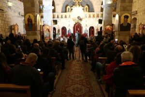 وشارك الحاضرون المرنّم حليم كرم الألحان وترانيم الميلاد،في أجواء من الفرح والأمل في الكنيسة.