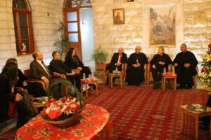 وفي الختام قدم الحضور التهاني بالعيد في صالون الكنيسة، حيث أقيم كوكتيل.