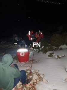 وفي التفاصيل، كان الدكتور ركان صالح، البالغ من العمر 31 عاماً، يمارس هواية الصيد في بوارج و تحديدا منطقة الرمتانية المعروفة بتضاريسها شديدة الوعورة وارتفاعها الكبير، قبل أن يؤدي تشكّل الجليد وانزلاقه إلى تعرّضه لإصابة بالغة تسببت بكسور في الساق والورك، ما جعله عالقاً في موقع بالغ الخطورة، وسط طقس قارس وانعدام شبه تام للتغطية الخلوية.