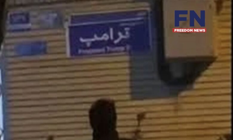 مع استمرار الاحتجاجات، تداول ناشطون عبر مواقع التواصل الاجتماعي مقطع فيديو يظهر أحد المحتجين في إيران يقوم بتغيير اسم أحد شوارع العاصمة باسم الرئيس الأميركي دونالد ترامب.