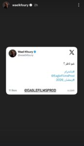 كشفت شركة Eagle Films، عن تعاقدها مع الفنان وائل كفوري لغناء شارة مسلسل “بالحرام”، المقرّر عرضه ضمن مسلسلات رمضان 2026 عبر شاشة الـMTV، وهو من بطولة الممثلة ماغي بو غصن إلى جانب نخبة من نجوم الدراما اللبنانية.