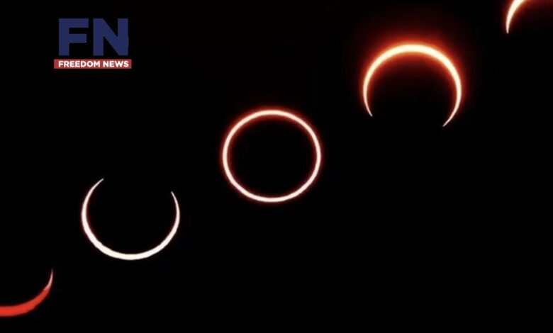 وأوضح أن الكسوف الحلقي يحدث عندما يقع القمر بين الشمس والأرض في لحظة الاقتران، فيحجب قرص الشمس دون أن يغطيه بالكامل، نظراً لوجود القمر في نقطة أبعد نسبياً عن الأرض، ما يجعل حجمه الظاهري أصغر من أن يغطي الشمس كلياً، فتظهر الشمس على شكل حلقة مضيئة تحيط بقرص القمر الأسود، ومن هنا جاءت تسميته بـ”الكسوف الحلقي”.
