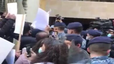 بالفيديو/ تدافع بين أهالي شهداء انفجار مرفأ بيروت وقوى الأمن أمام منزل القاضي فادي صوان